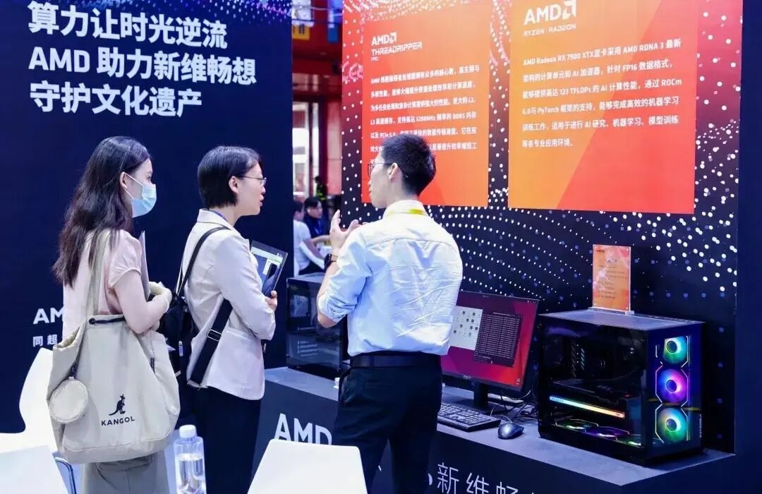 Among them, Yan Dun, an important cultural relic of Beijing's South-Central Axis, was presented in the form of a digital display. Through the micro-trace restoration technology, with visual AI enhancement, it was re-presented to the public, so that the cultural heritage of Yan Dun, the landmark of Beijing's central axis, made a wonderful appearance in the pavilion of GITF. Behind this scene is the effort of new dimension thinking together with AMD and AMD industry solution partner Kuanheng Technology, and the three parties jointly presented the latest technology and solutions for digitization of cultural relics and monuments. This case connected technology and AI applications, integrating protection, restoration, utilization and dissemination, and aroused the interest of many visitors.
